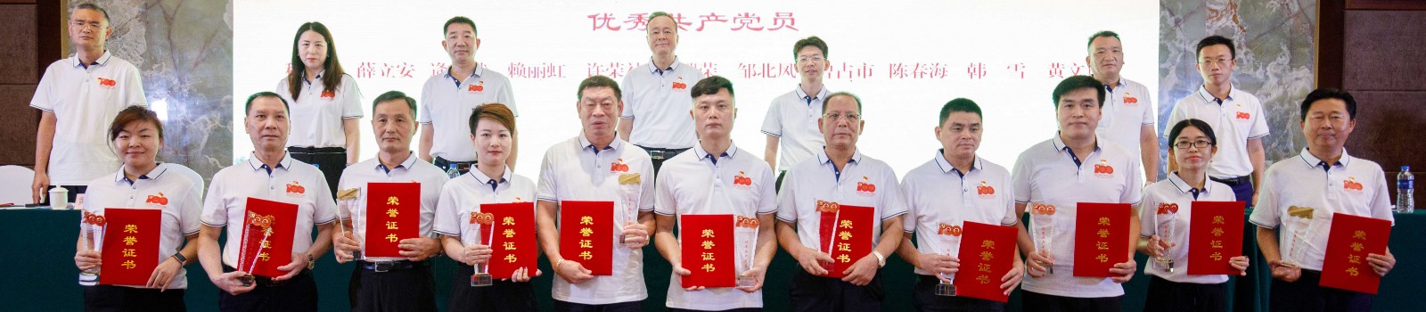 2019年6月23日,北京福建總商會黨委舉行紀念“七一”建黨98周年大會,黨委書記、會長陳春玖與獲獎代表合影